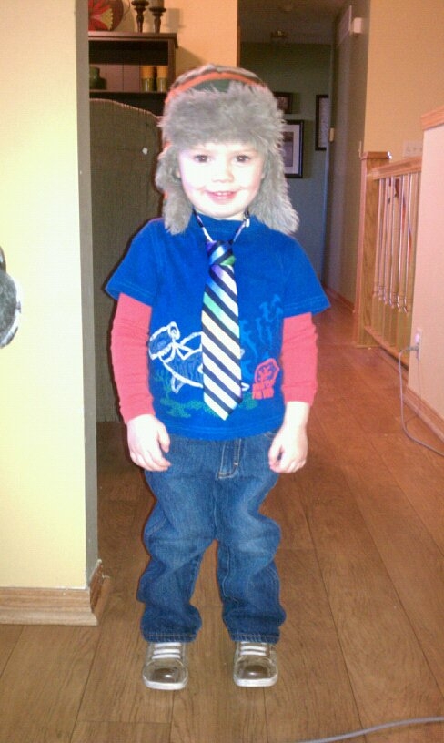 Here’s an example of C dressing himself. Bad pic, but you get the idea.